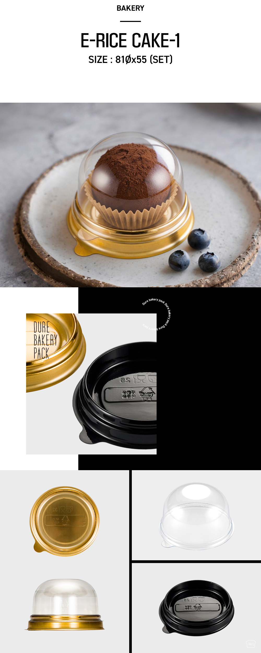 | E-RICE CAKE-1(CNTR)GOLD/BLACK | CONTAINER | PLA/OTHER | 81Øx15 | 1000EA | |